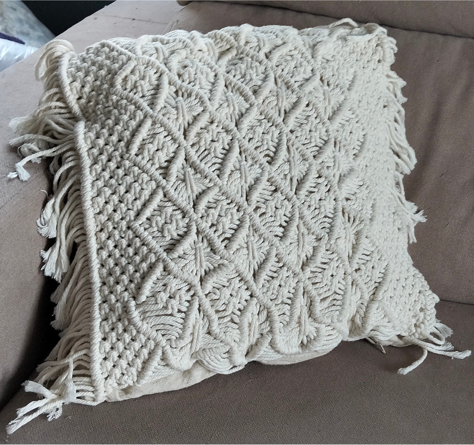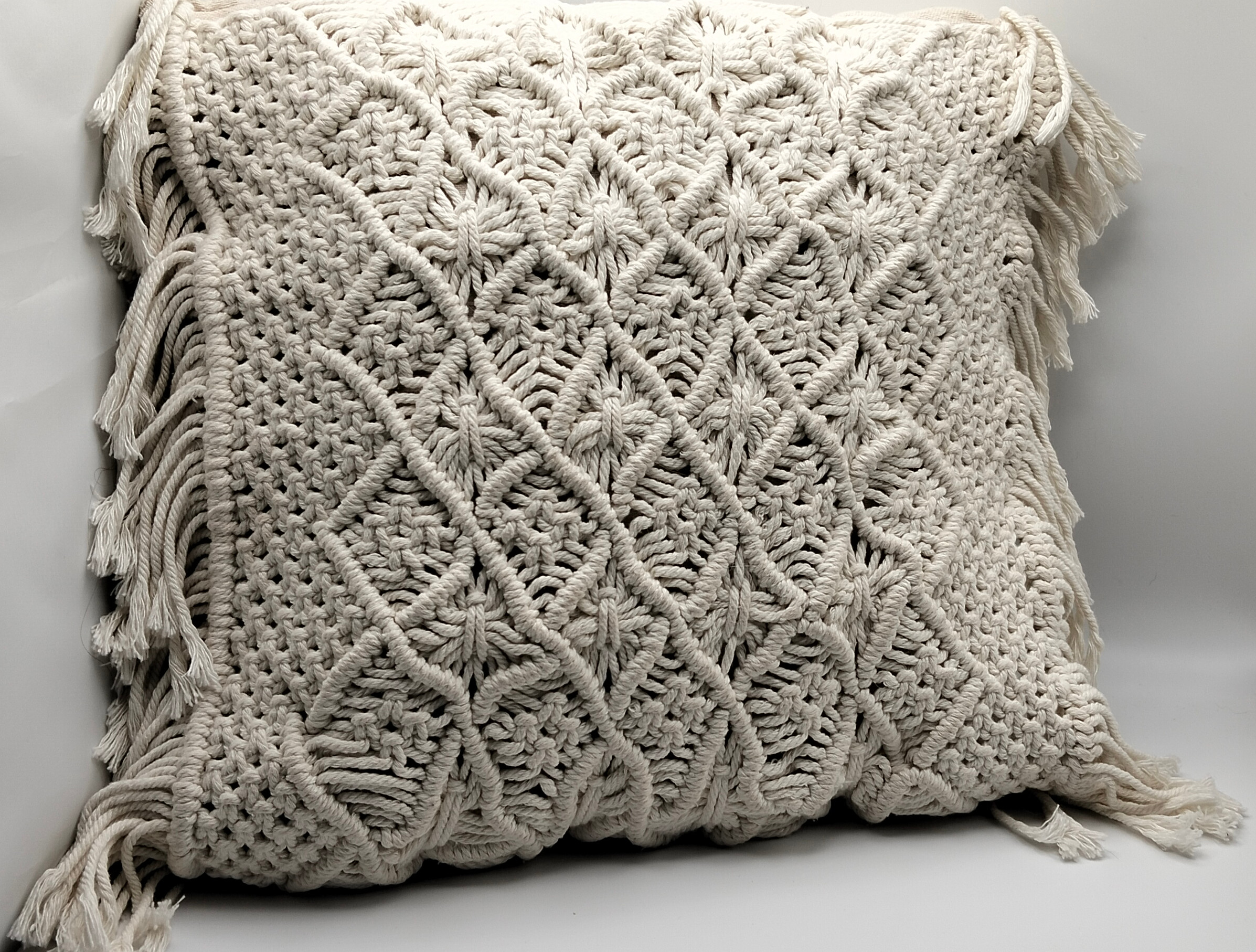Cojín Decorativo de Macramé Hecho a Mano. Estilo Boho Chic, Funda de Almohada de Algodón Natural.