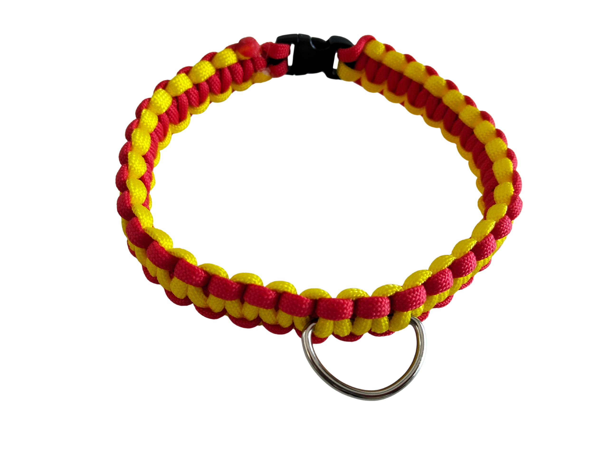 Collar Perro Artesanal Bandera de España – Paracord Gualda y Rojo – Nudo Cobra – Fuerte y Duradero